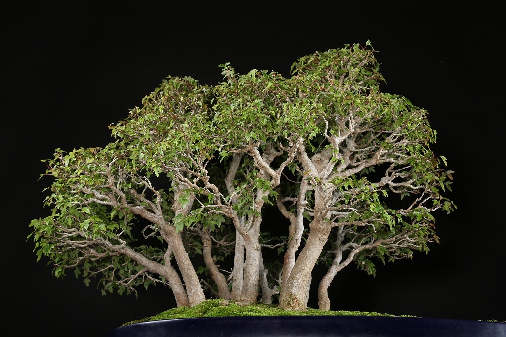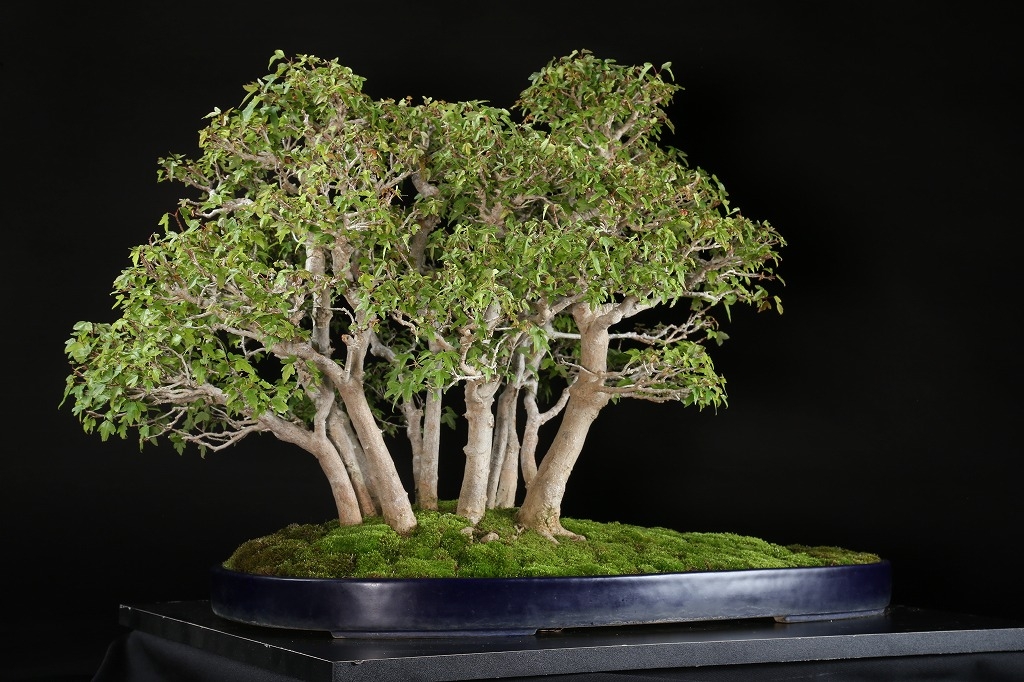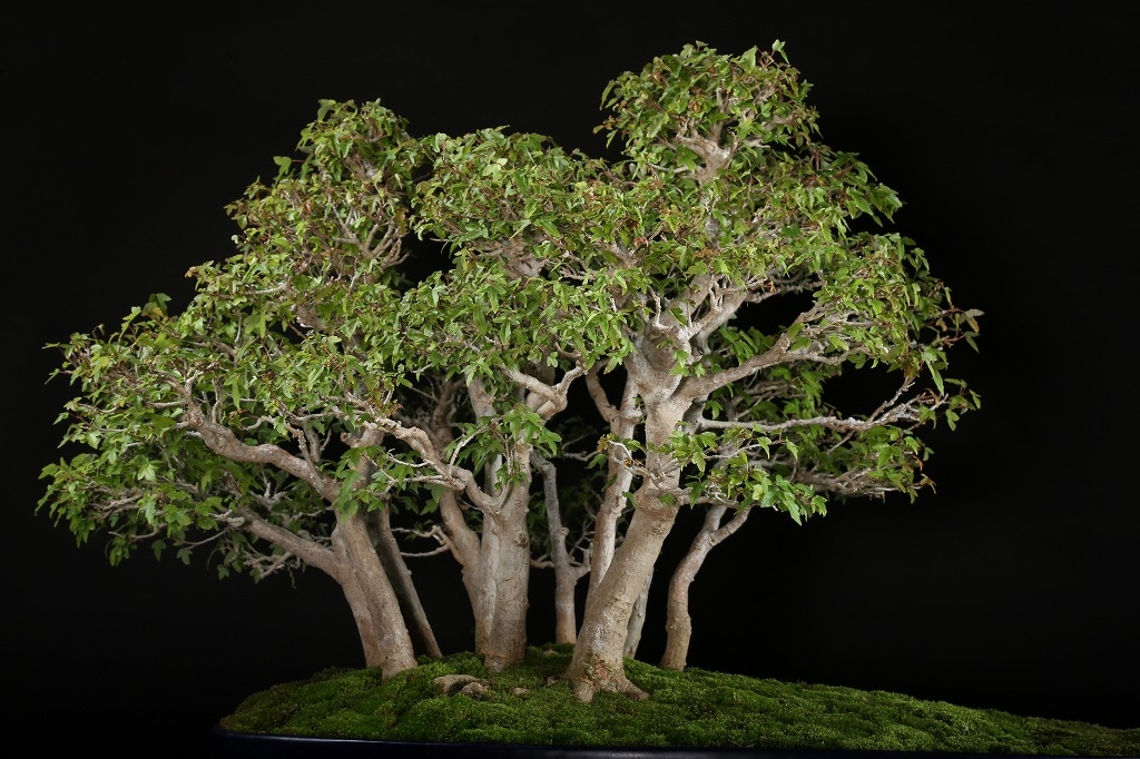 僅かな本数で、大きな林景を見せるのは、枝先まで行き届いた細やかな作出によるものです。おそらくこのひと鉢のみが描き出す世界観を持つ貴重な作品です。