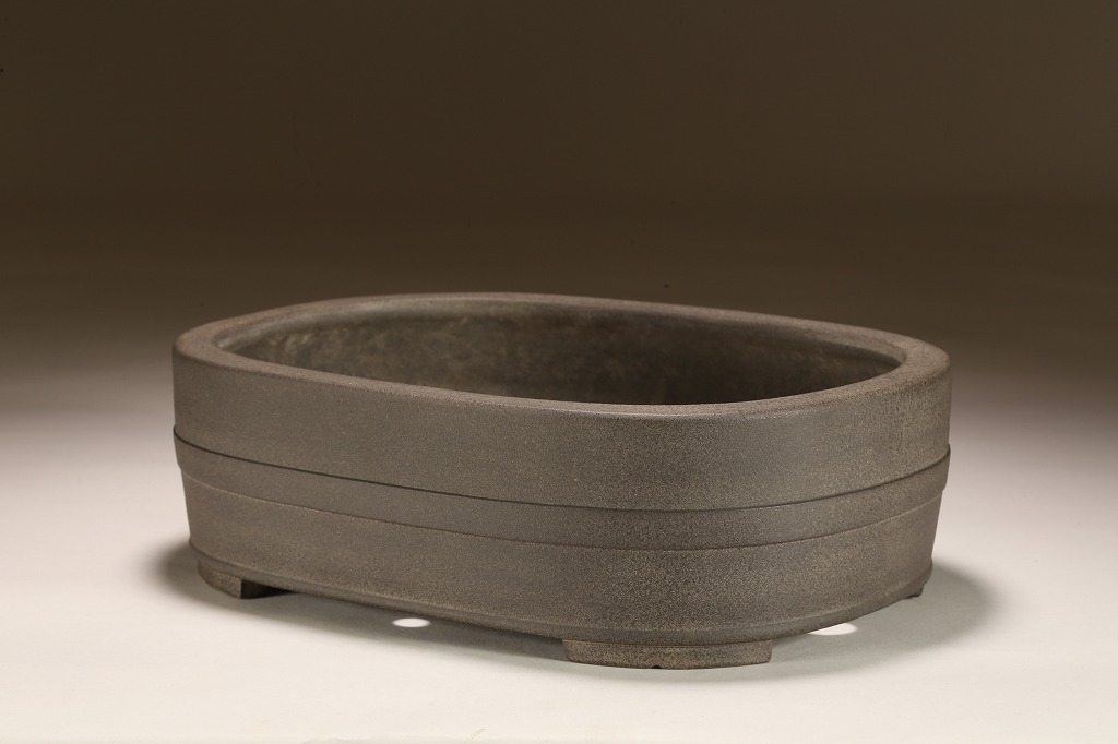 底面には、万博記念の印が押され、限定品である事が確認できます。中型中深の実用的なこの鉢は、実用品として盆栽界で使われて来ましたが、昨今の“山秋人気“で、海外への流出が多く、本作の入手も難しくなっています。