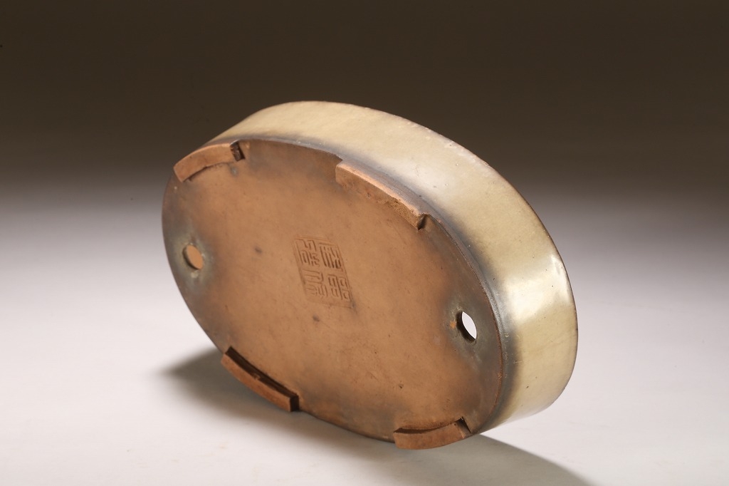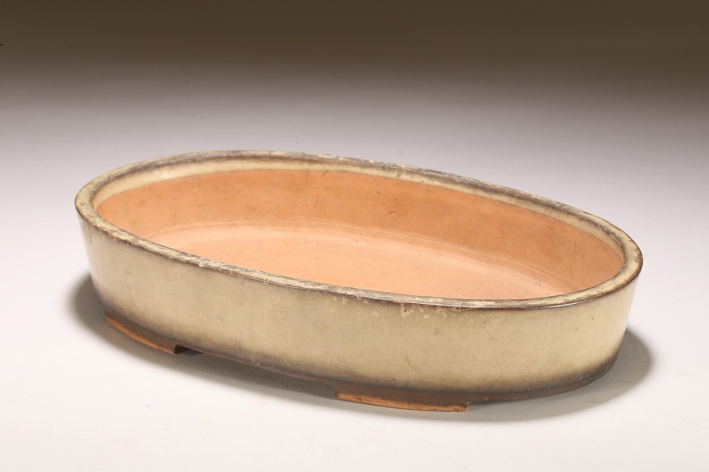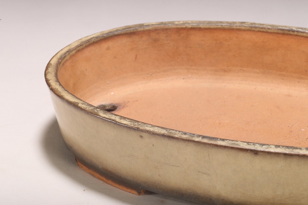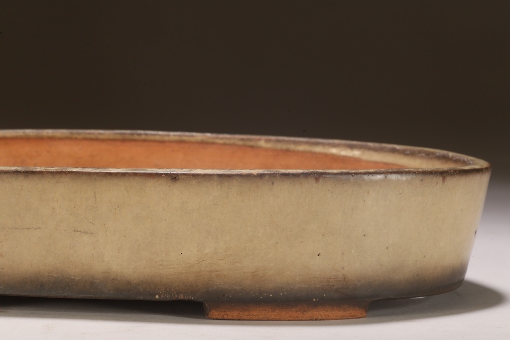 スッキリとした“線“ 、名印「留佩」ならではの美しい器形。中品実用名器をお求めやすい価格でご紹介します。国風展三点飾りの“受け“の樹を合わせる鉢として、ここからも著名盆栽展を飾る秀作です。約120~150年前の古作。