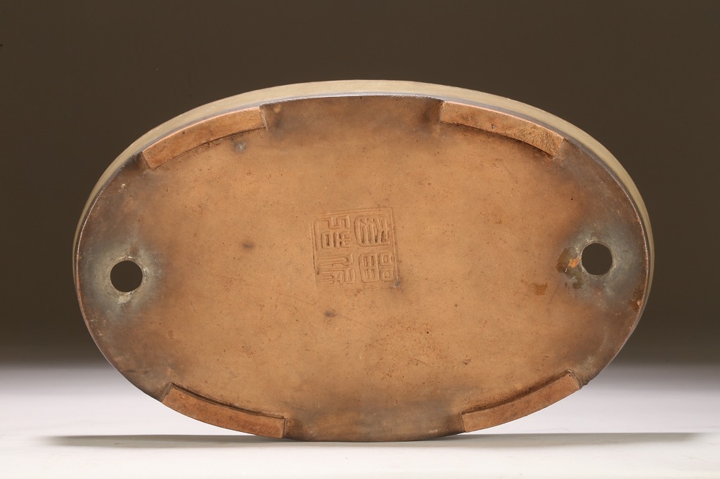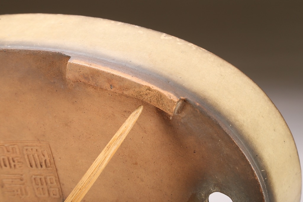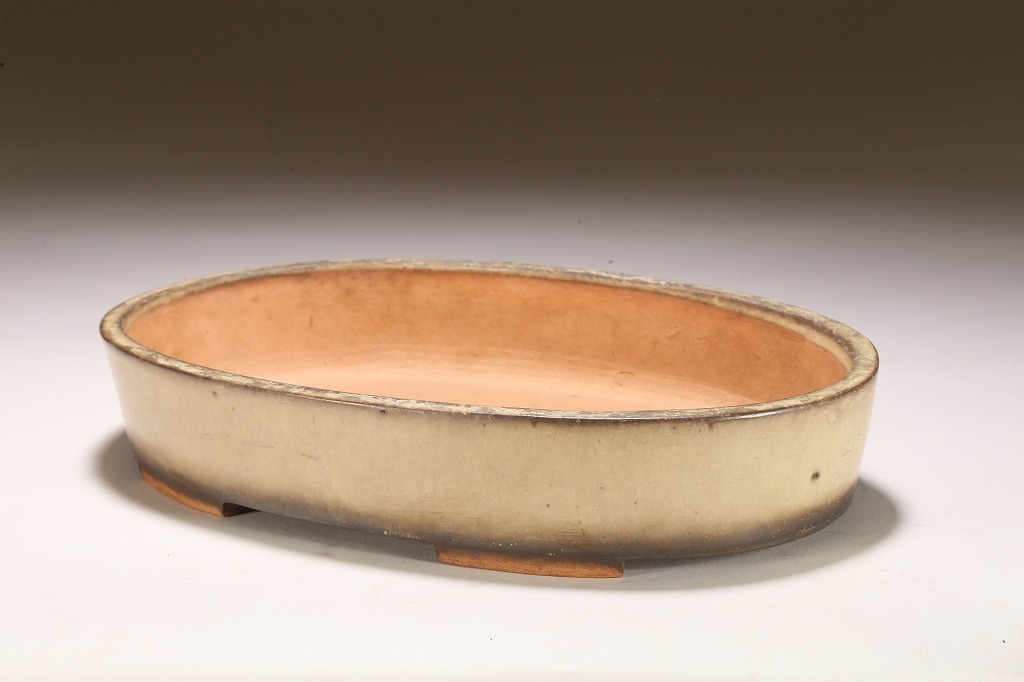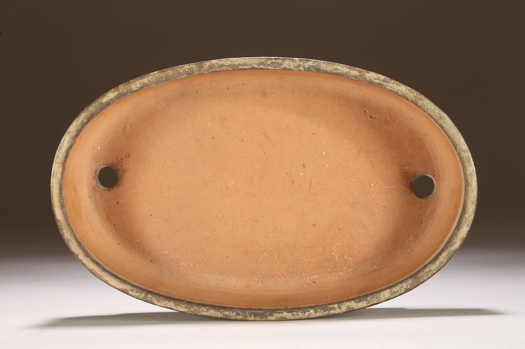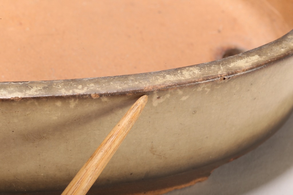 スッキリとした“線“ 、名印「留佩」ならではの美しい器形。中品実用名器をお求めやすい価格でご紹介します。国風展三点飾りの“受け“の樹を合わせる鉢として、ここからも著名盆栽展を飾る秀作です。約120~150年前の古作。