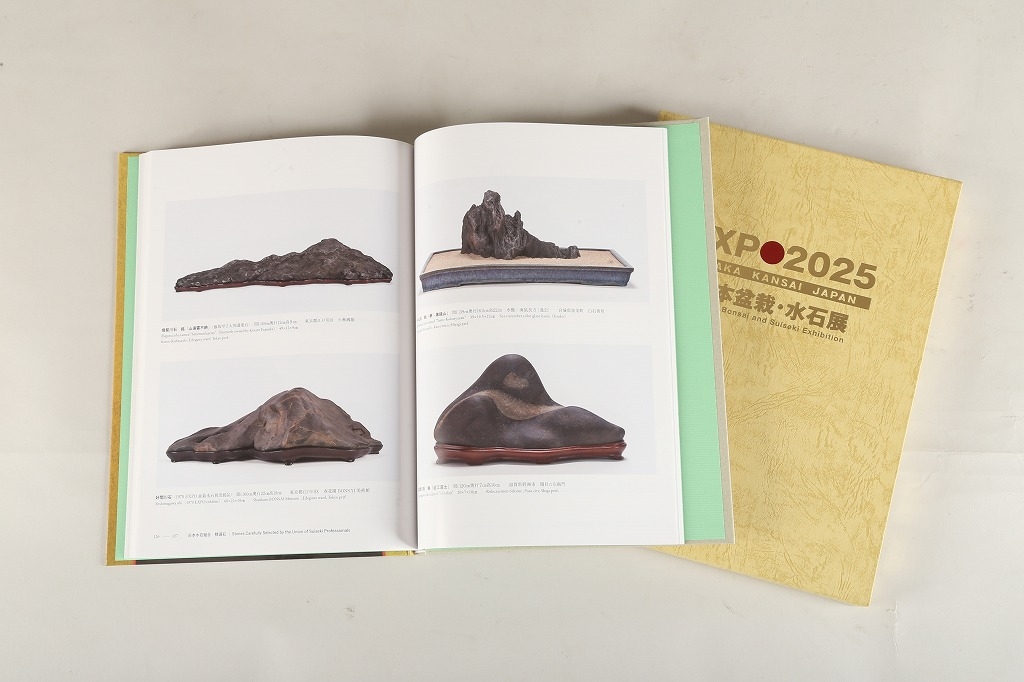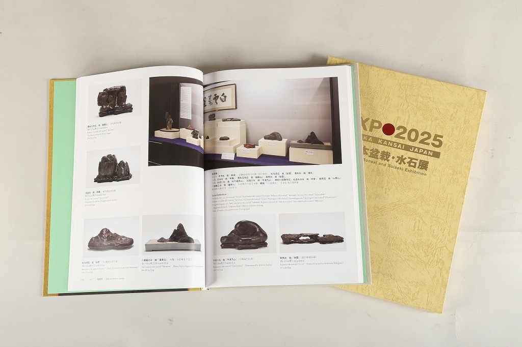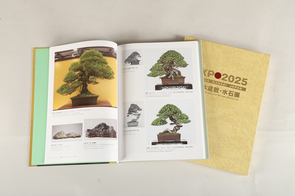 2025年、大阪で開催された、55年ぶりの万国博覧会。半世紀以上前、その大展に盆栽庭園が作られて、爆発的な盆栽ブームの火付け役となった事、往時を知る私達には記憶に深いものがあります。今回の展覧も、1970年に飾られた名樹達、貴重盆栽の数々、徳川家旧蔵などの歴史的盆栽、そして水石に至っては、公開される事が殆どないと言える名石達が、“万博ならば“と、展示されました。これら全展示品を掲載した記念帳が刊行され、当サイトでは、市場販売分のすべてを展覧会側と協議してご紹介する形となりました。