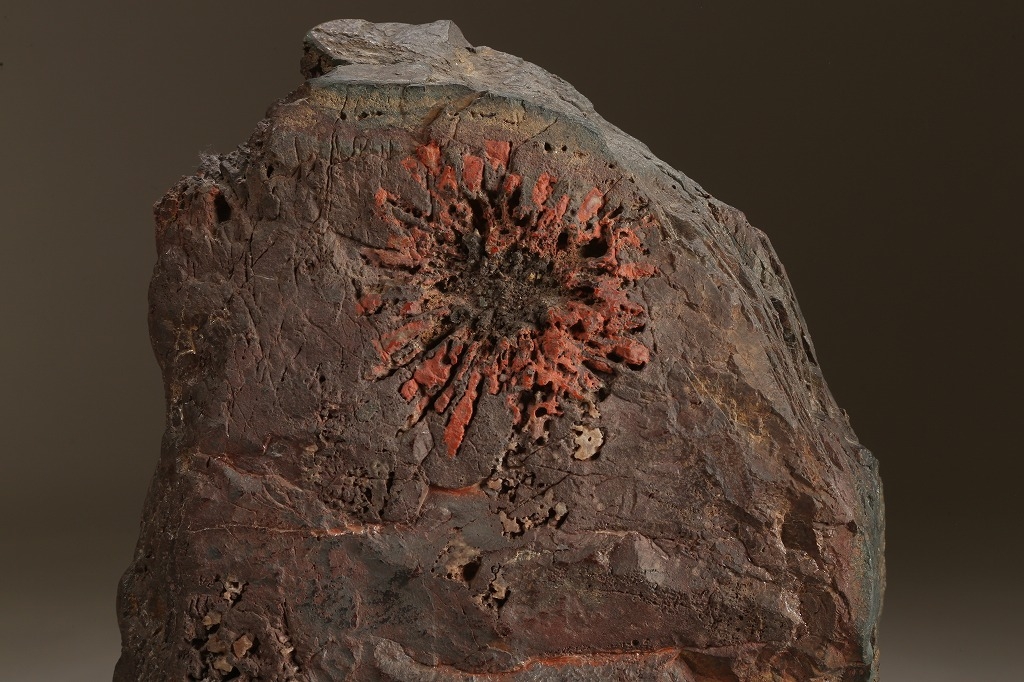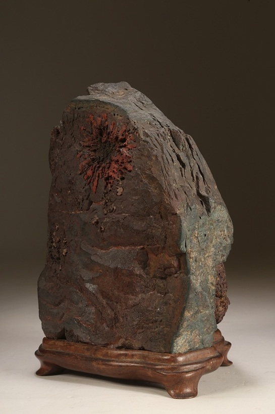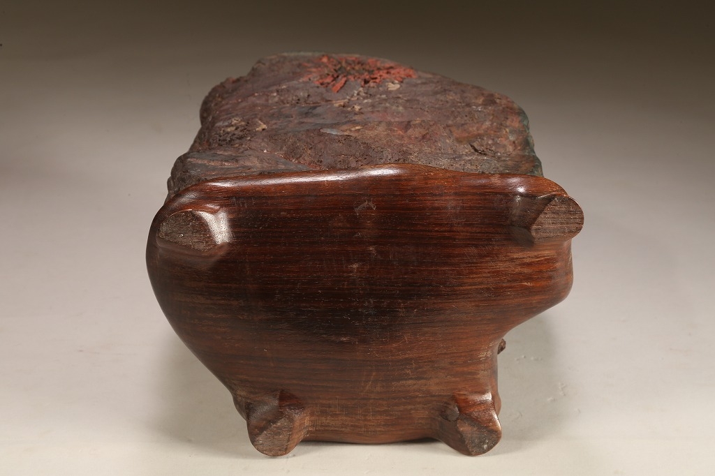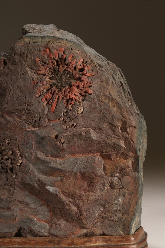 古感素晴らしい年代を経た朱菊を見せる古石です。石面全体が紫貴船に見紛う程の良質な母岩となっています。