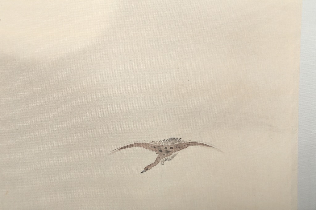 内久根3代目の縁で、石川清秋さんと出会って、盆栽・水石・添えなどとの、三位一体の飾りの為の掛物を試行錯誤すること5~7年、ようやく愛好家の方々にご披露できるものとなりました。寡作ゆえ、良品は完成間もなく成約となる中、秋使いの本作は出色の作品です。画中に半身で描かれた秋月、一羽の雁がゆったりと舞い降りてくる姿は、盆栽にも水石にも満点の秋飾りの掛物と言えます。石川清秋師の記念すべき当サイト初のご紹介作品をご覧下さい。