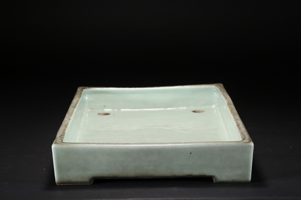 元々、水盤として製作された物ですが、適度な深さから、雑木用の盆器に活用する為に、戦前に穴開けがされたと思われます。