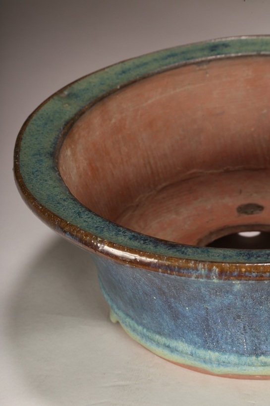 深手の丸が多い海鼠鉢において、この鉢のように中深の合わせる樹が様々に使えるものは稀少です。保存状態も良く、古老愛好家よりの割愛によってご紹介させて頂きます。