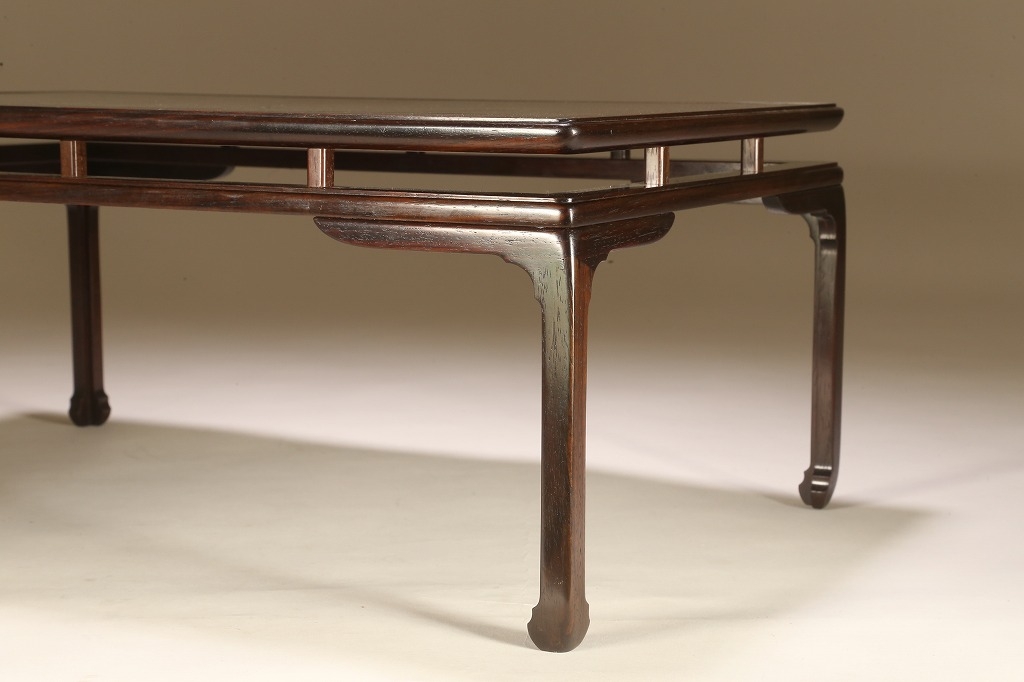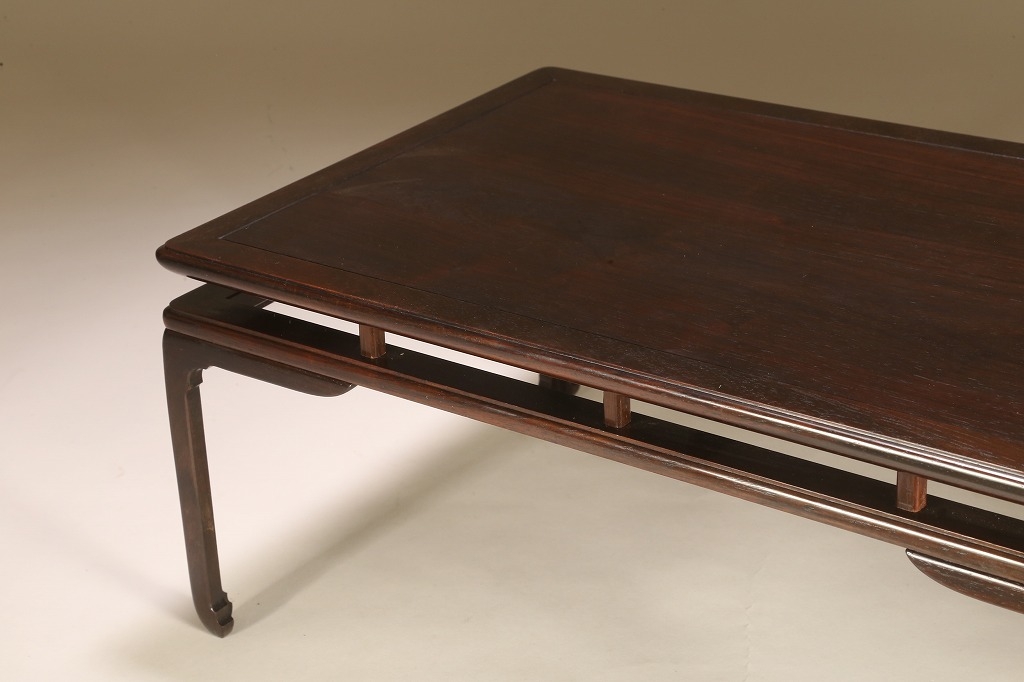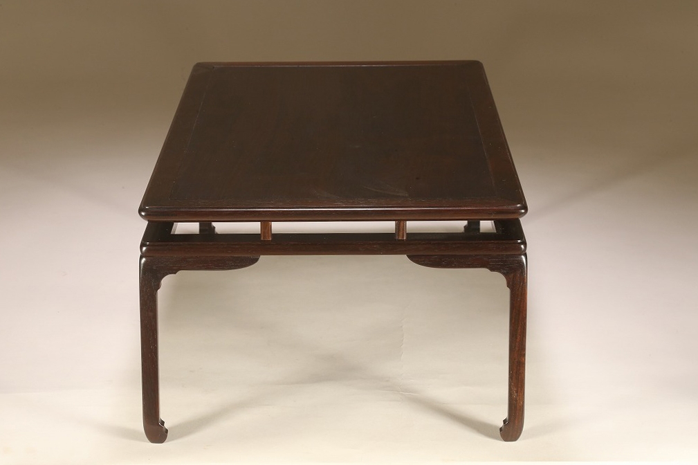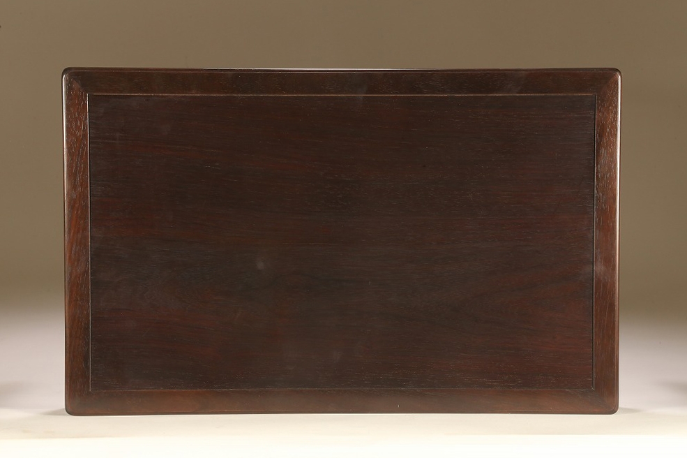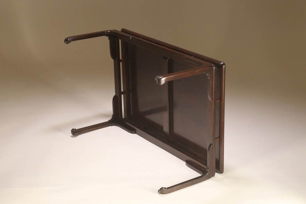 最上硬質の紫檀材を用いた、一点誂え造りのこの卓は、関西にただ一人の名卓職人、出口史郎師による賓作です。国風展や大観展に時折僅か数点を展示販売される出口師、本作も本人への小店からの制作依頼に応えて作られたもの。堅木の紫檀をこれ程に“薄造り“で仕上げるのは至難の業、寡作で有名な師も高齢となり、月に数点しか作れません。掲載後、早めのご注文をお勧めします。