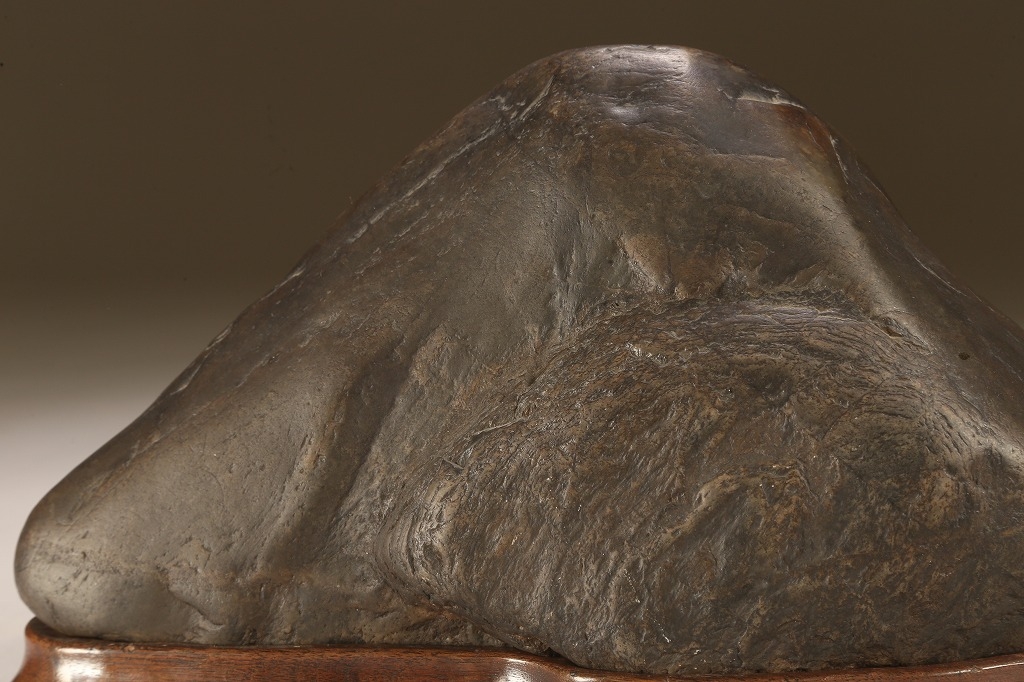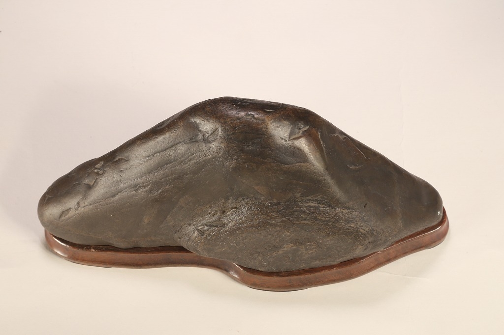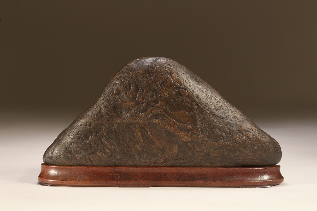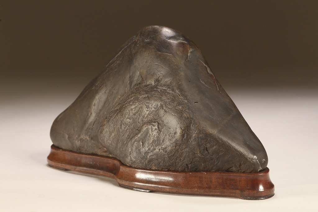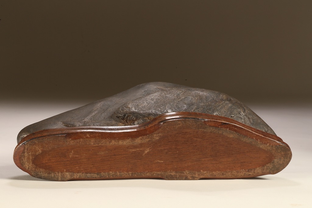 底部を含めて加工なき天然石です。台座の造りも、現代の水石台座ではなく、更に一時代古きものです。
