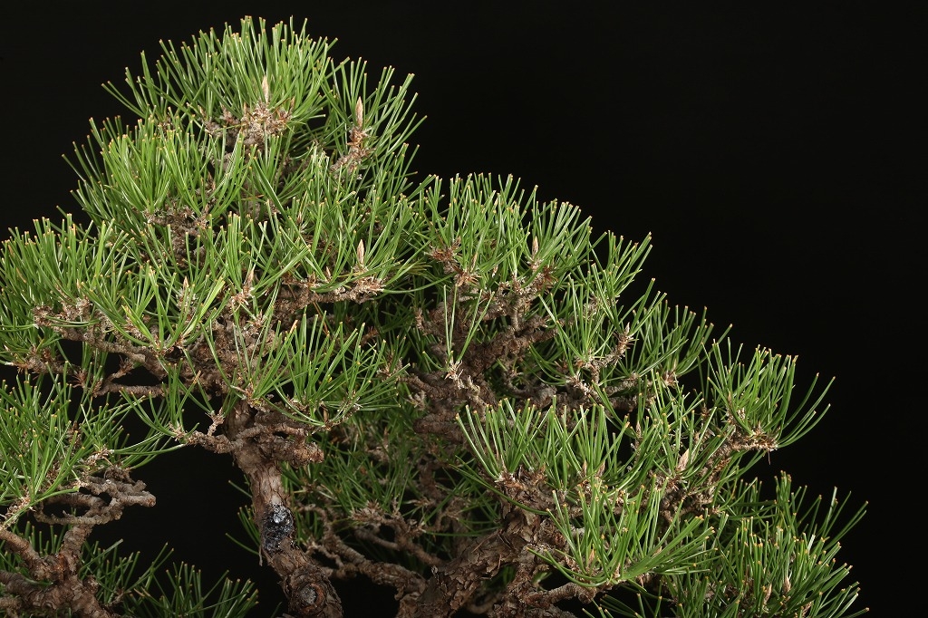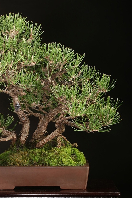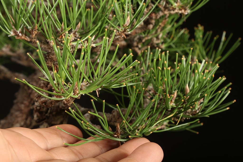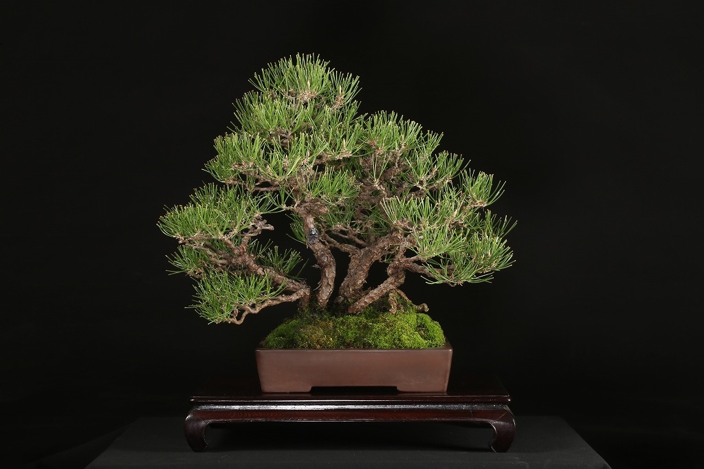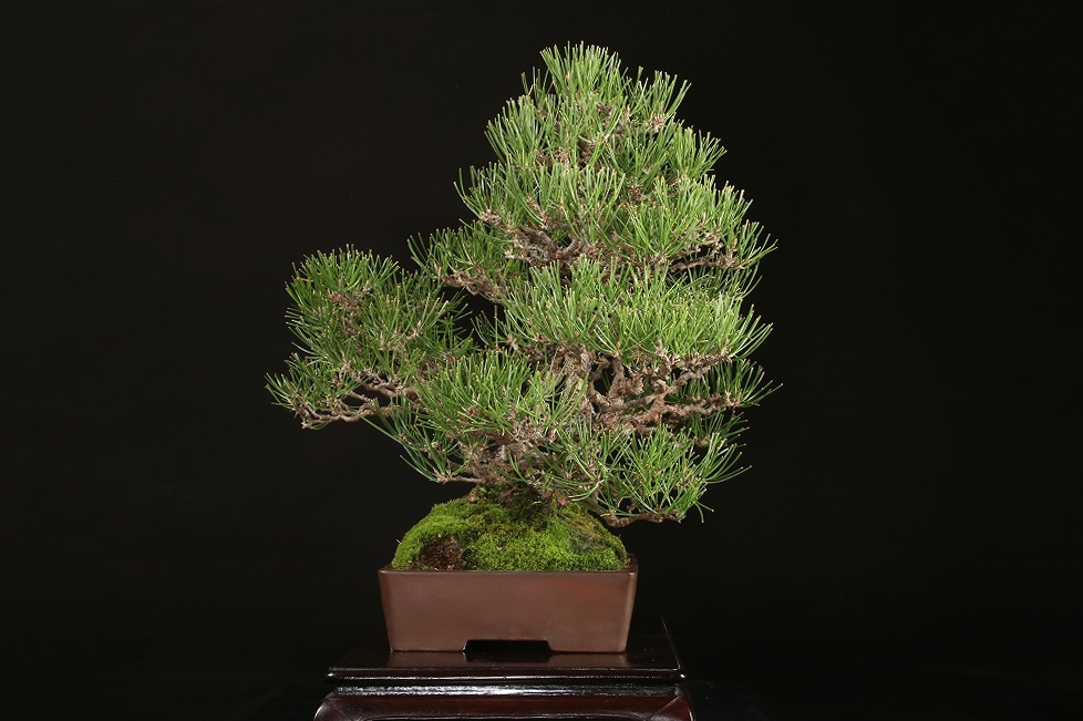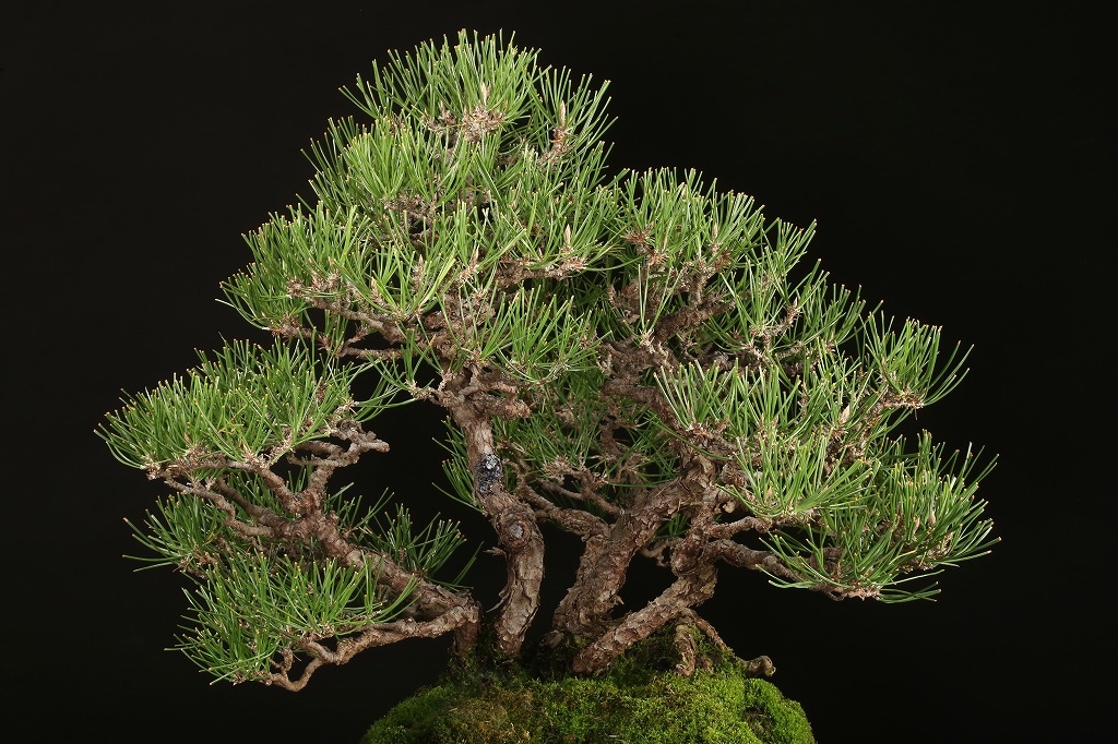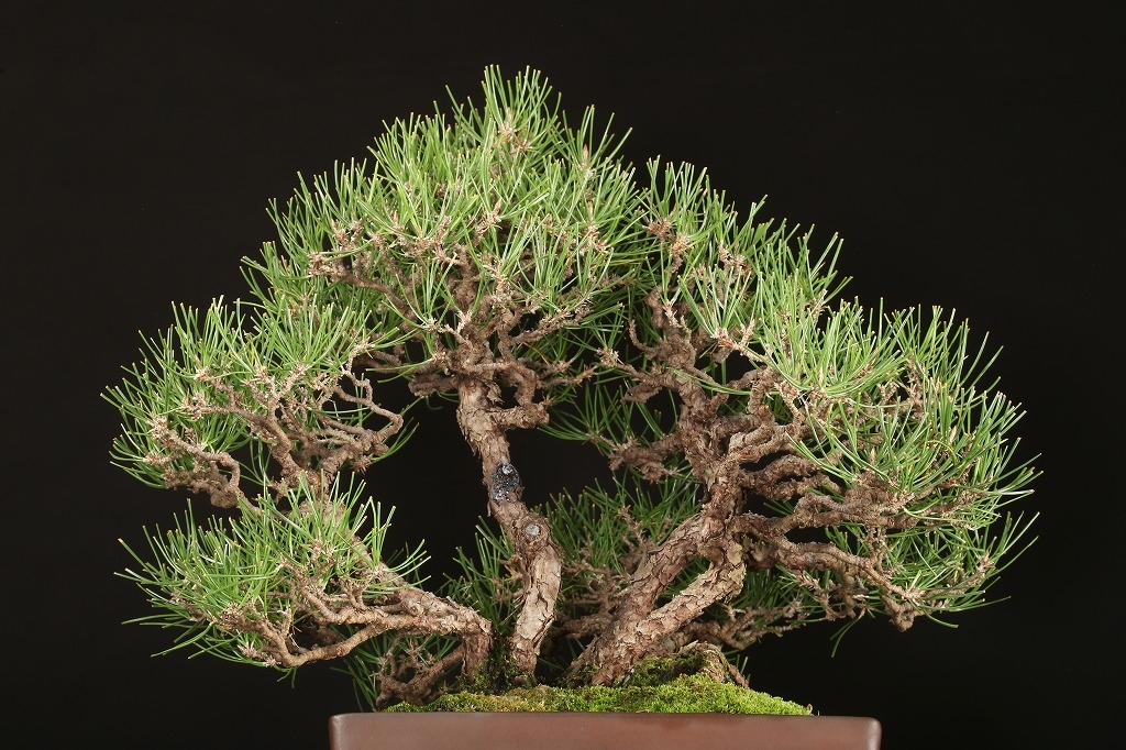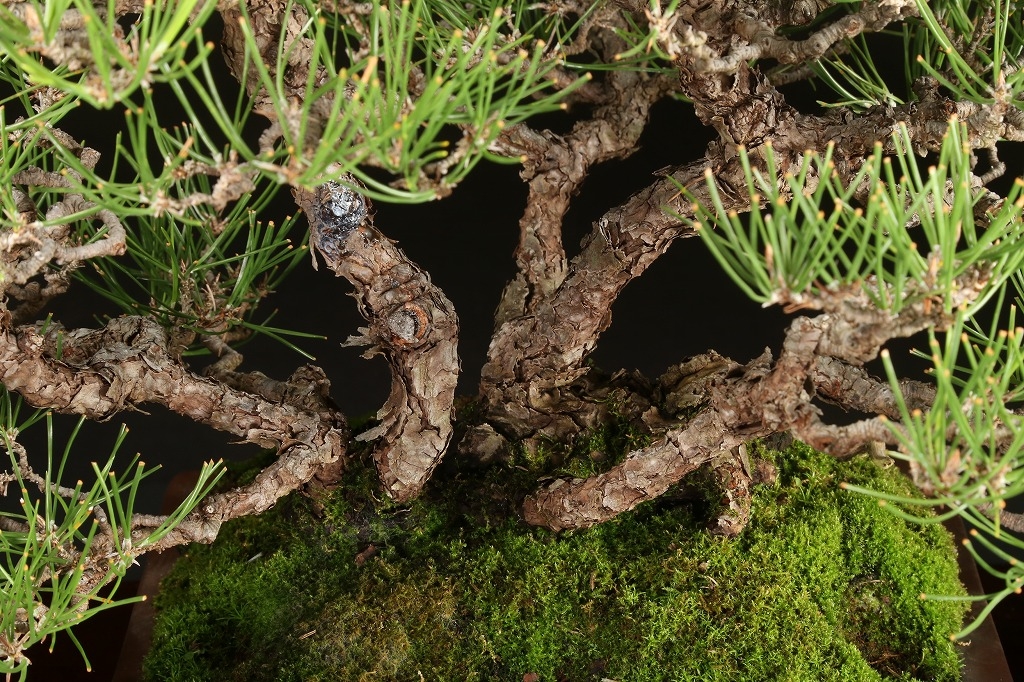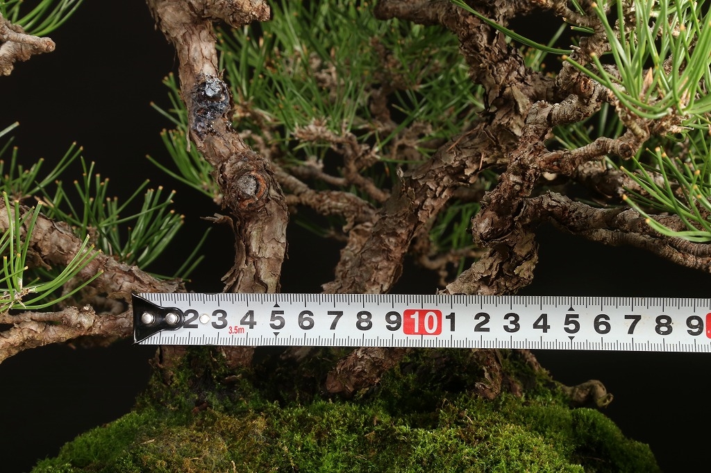 素性良い“三河黒松“の実生苗を若木の頃より、“摘み寄せ植え“の培養で、ここまでの樹相に導くのは至難の技!丹精の限りを尽くした愛好家旧蔵ならではのものです。
