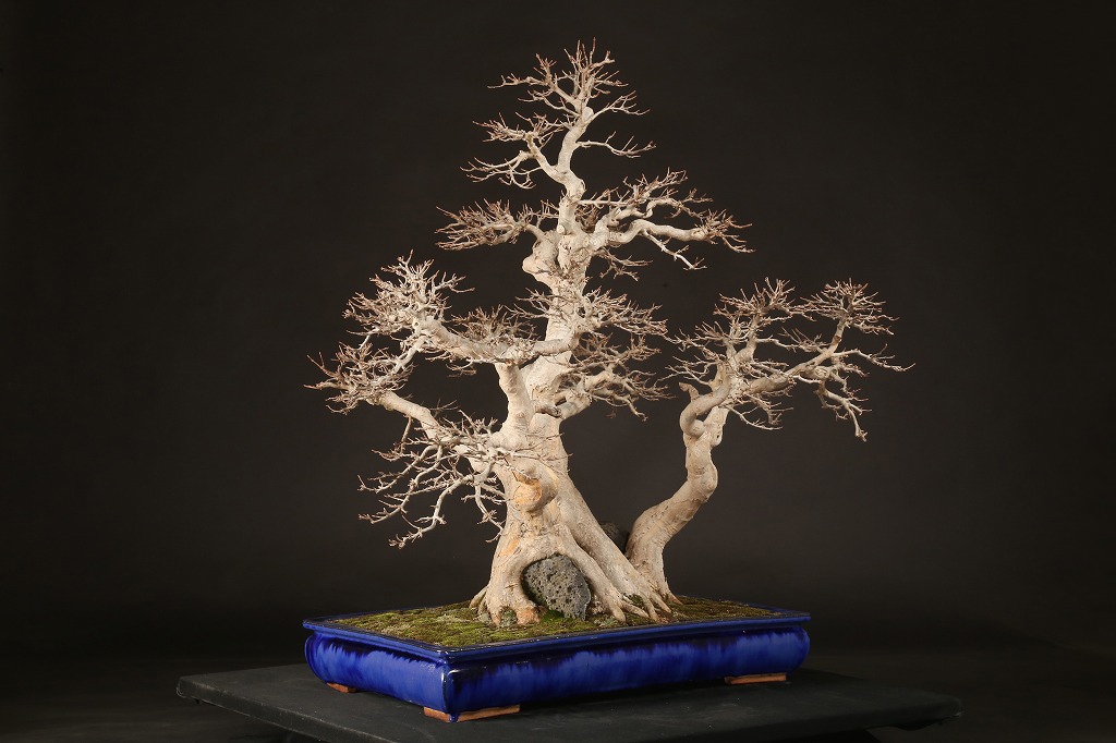 長い刻をかけて、石上に付けた3本の楓がひとつの大きな樹相を創り上げた逸品です。