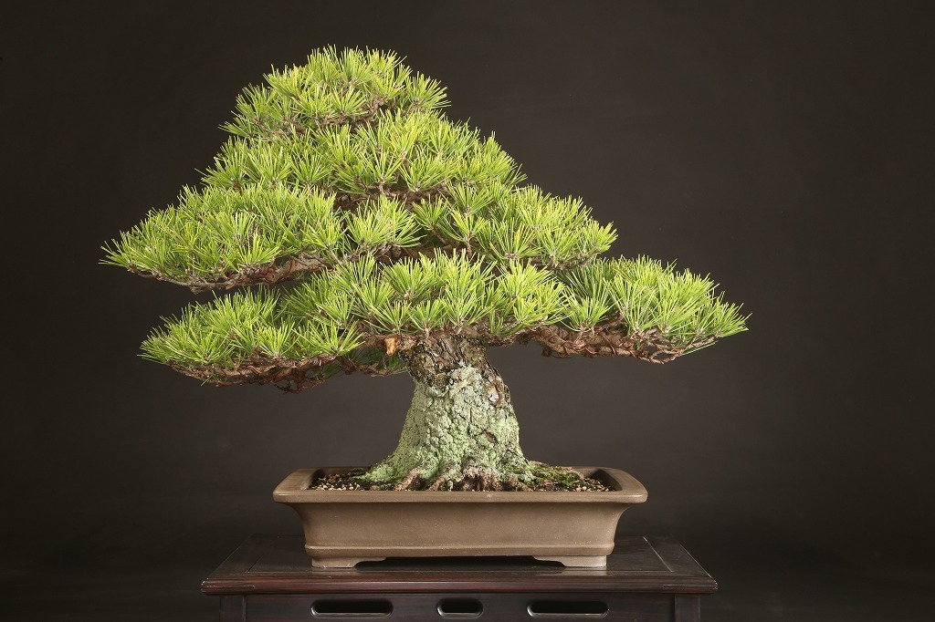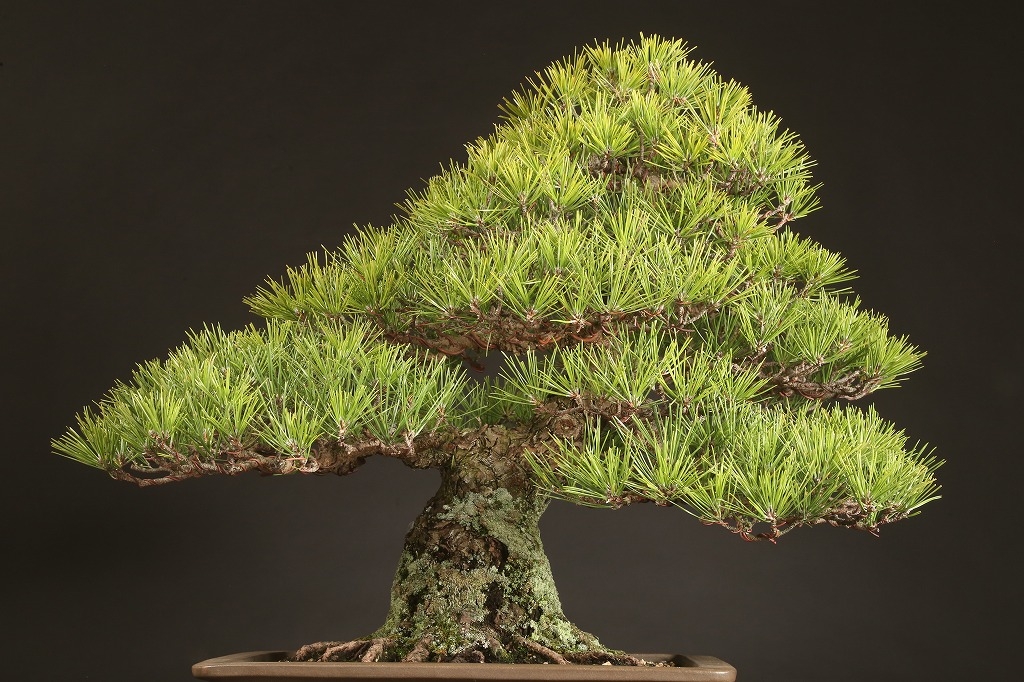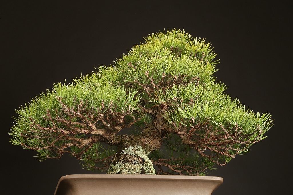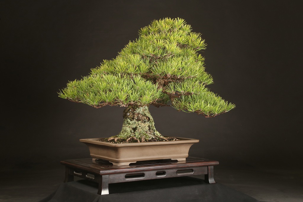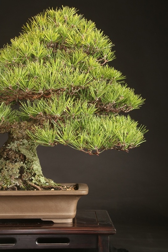 細身の頃より丹精を重ねて作出された、ごまかしのない美しい黒松です。幹味・枝配りの緻密さ、根張りの状態からも、ここからの数年の培養で、国風展中品黒松の秀樹が仕上がります。疵気ない鉢作りの古作をご紹介します。