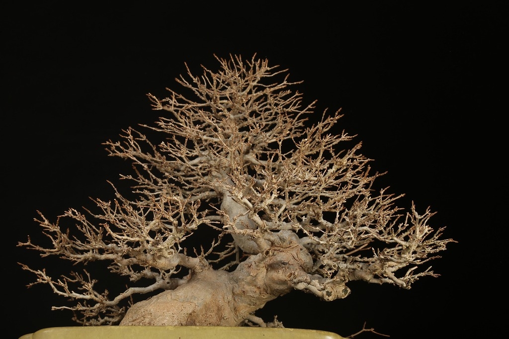 中品楓の理想を追い求めて作出された逸品です。幹姿、小枝まで細やかに仕立てられた枝姿。ここから東福寺や広東などの鑑賞鉢に入れ替えれば、そのまま国風展まで届く名樹です。小品界の重鎮が手がけた展覧会未発表の作品です。