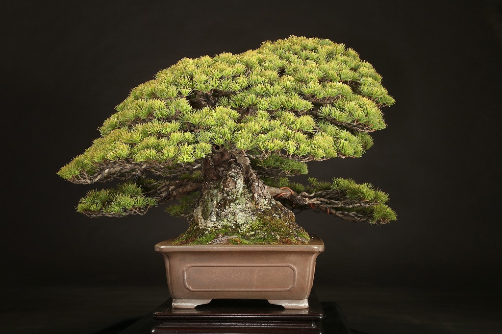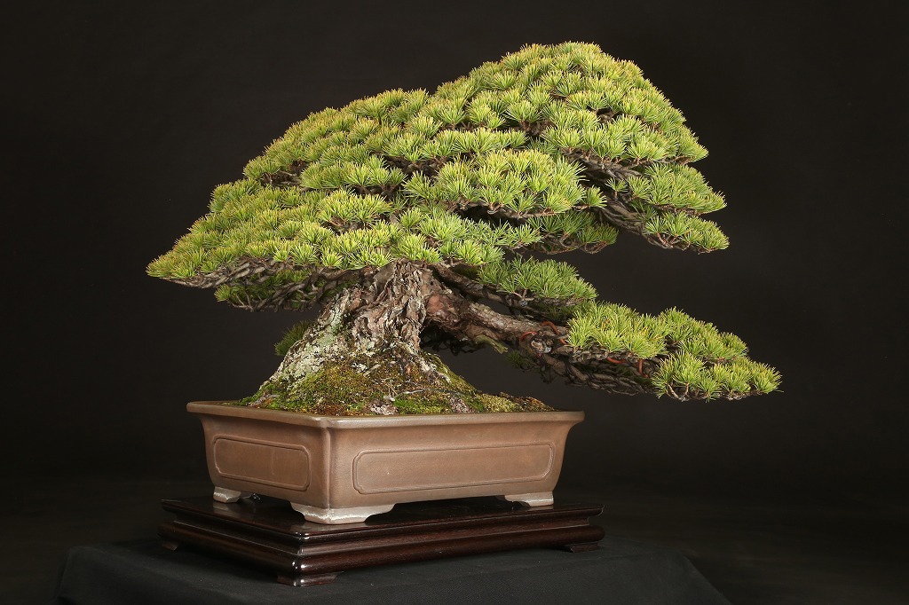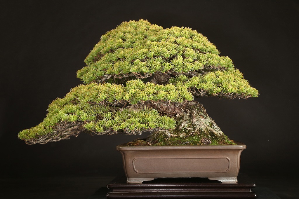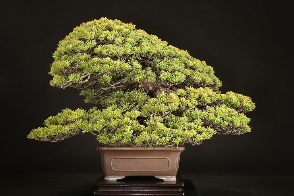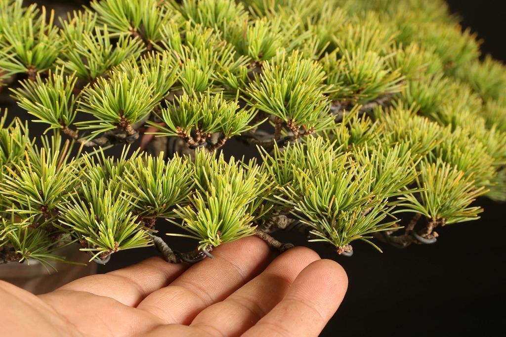 那須五葉松の中型最上級の逸品です。流れを持つ立ち上がり、自然なその姿に沿う右差枝の樹相。長い年月をかけて丹精を続けなければ現出出来ない響く樹格。本来の座敷飾りの床の間にはこのような“真の位“の五葉松が飾られていたでしょう。