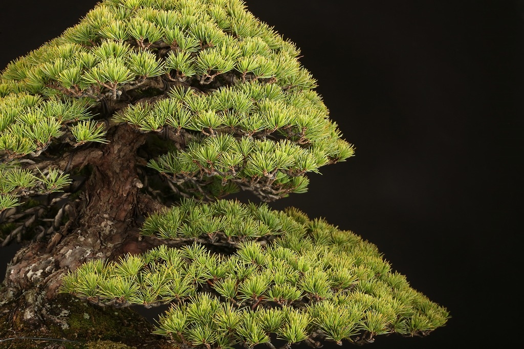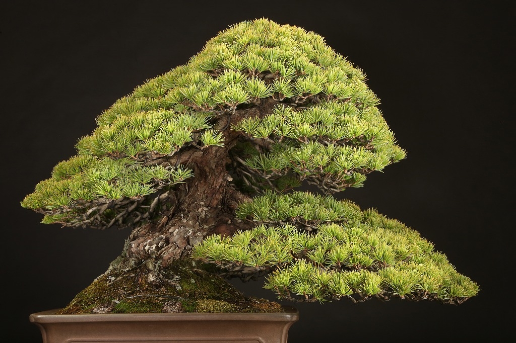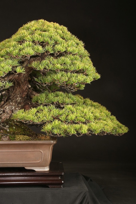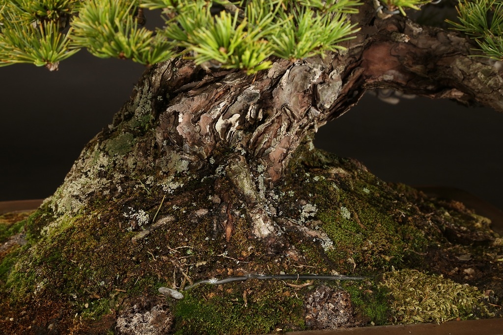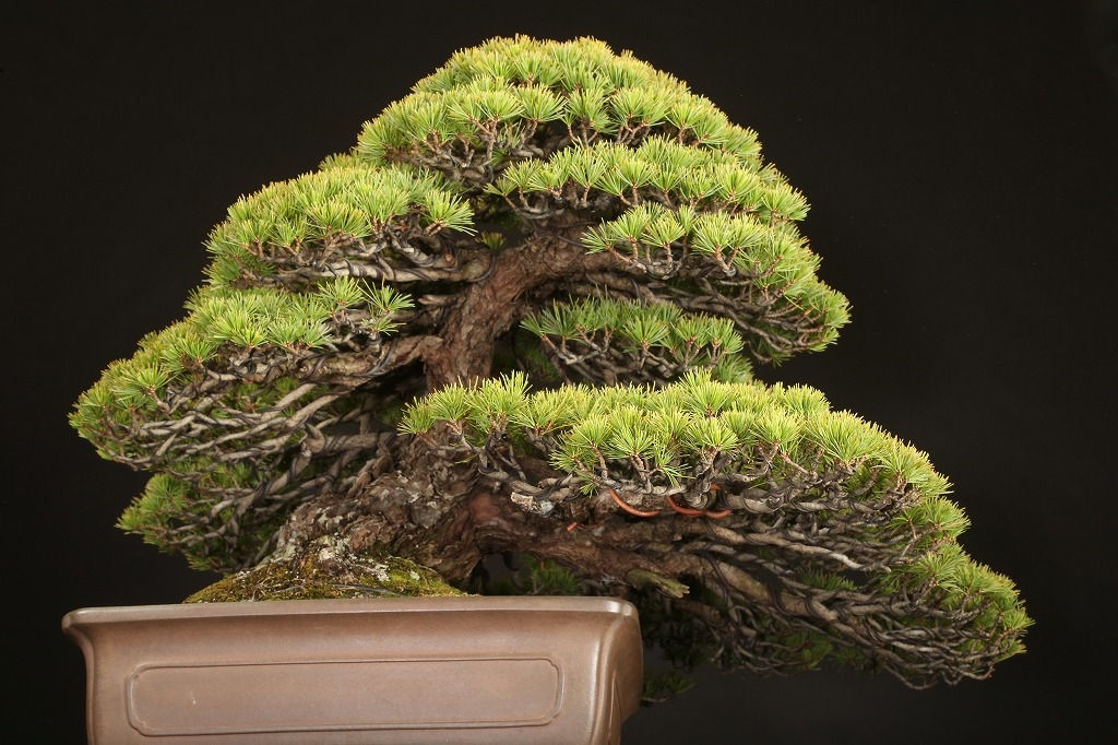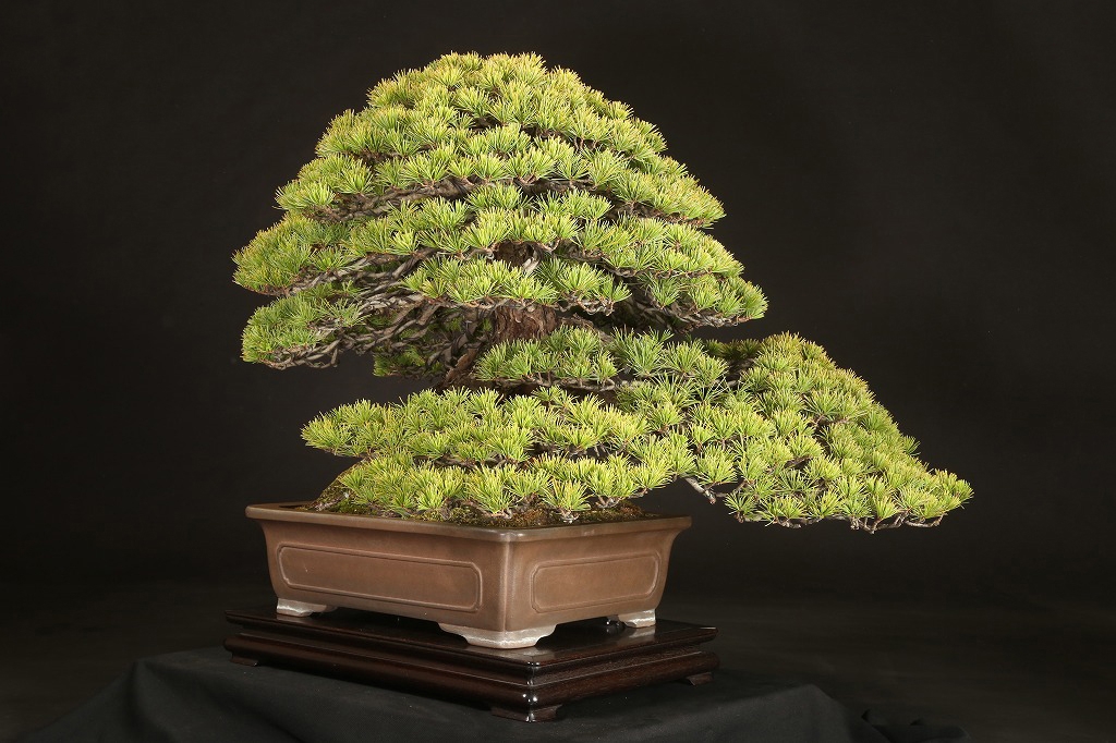 那須五葉松の中型最上級の逸品です。流れを持つ立ち上がり、自然なその姿に沿う右差枝の樹相。長い年月をかけて丹精を続けなければ現出出来ない響く樹格。本来の座敷飾りの床の間にはこのような“真の位“の五葉松が飾られていたでしょう。